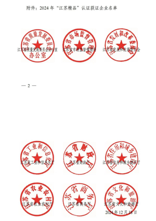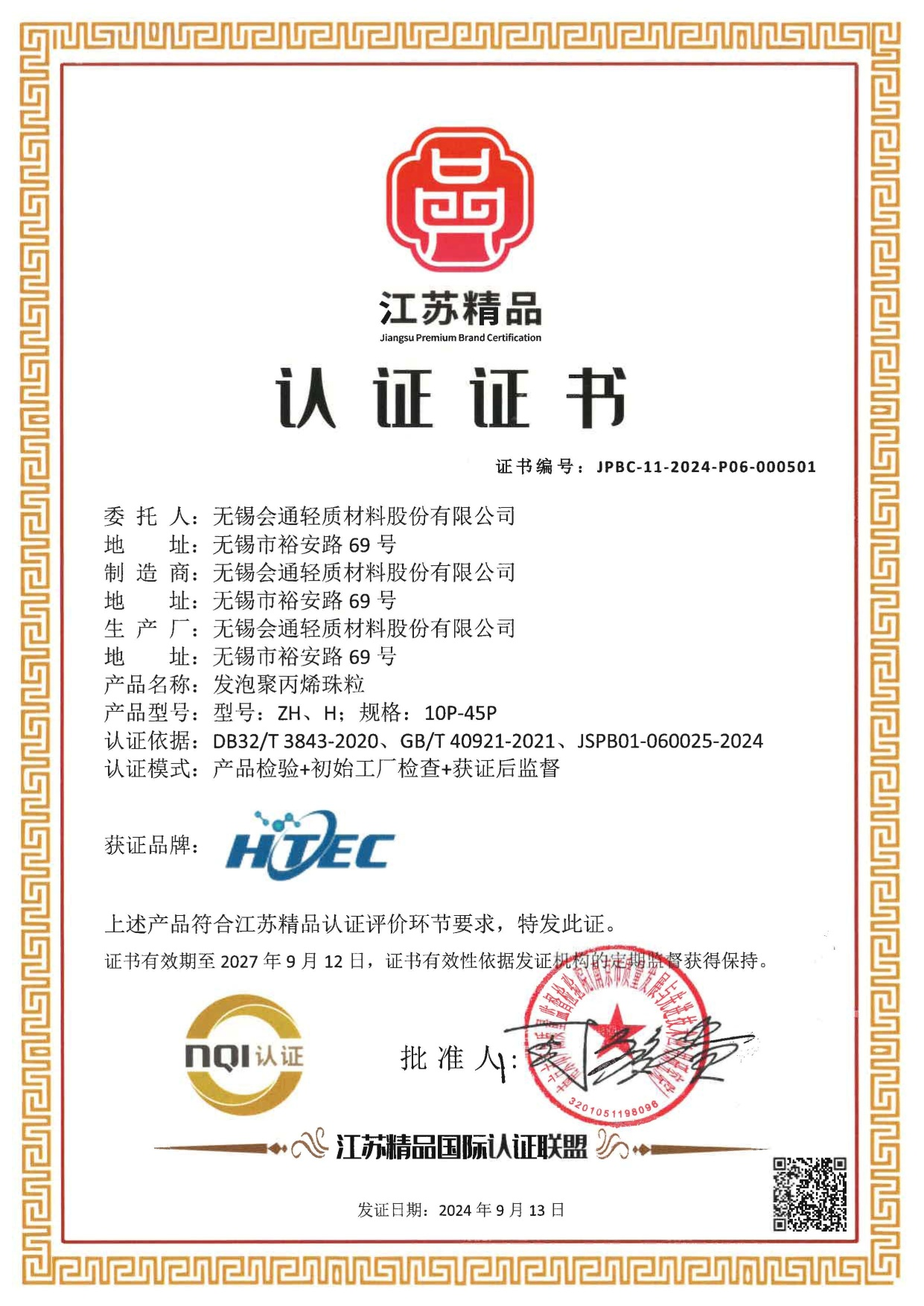 According to the certification rules of "Jiangsu Fine Products", HTEC passed the "Jiangsu Fine Products" certification in September 2024 after the evaluation of standard advancement, certification evaluation, and credit inquiry.