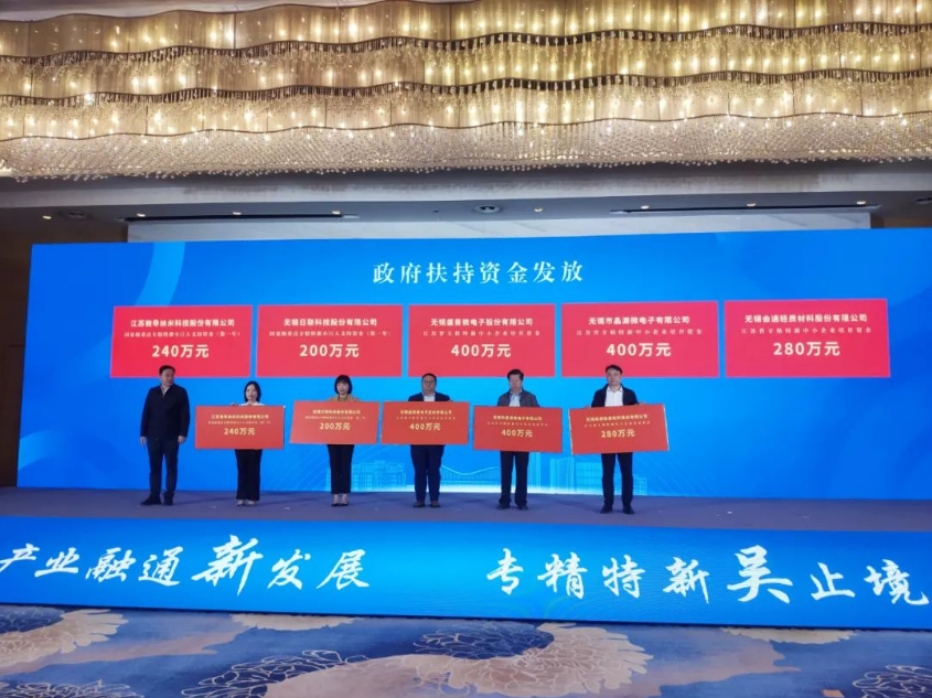 Zhu Min, general manager of WuXi Hi-Tec Environmental Material Co., Ltd.(hereinafter referred to as "Huitong Light Materials"), attended the meeting and accepted the 2022 National Specialized Special New Little Giant Enterprise Award and government support funds of 2.8 million yuan on behalf of the company.